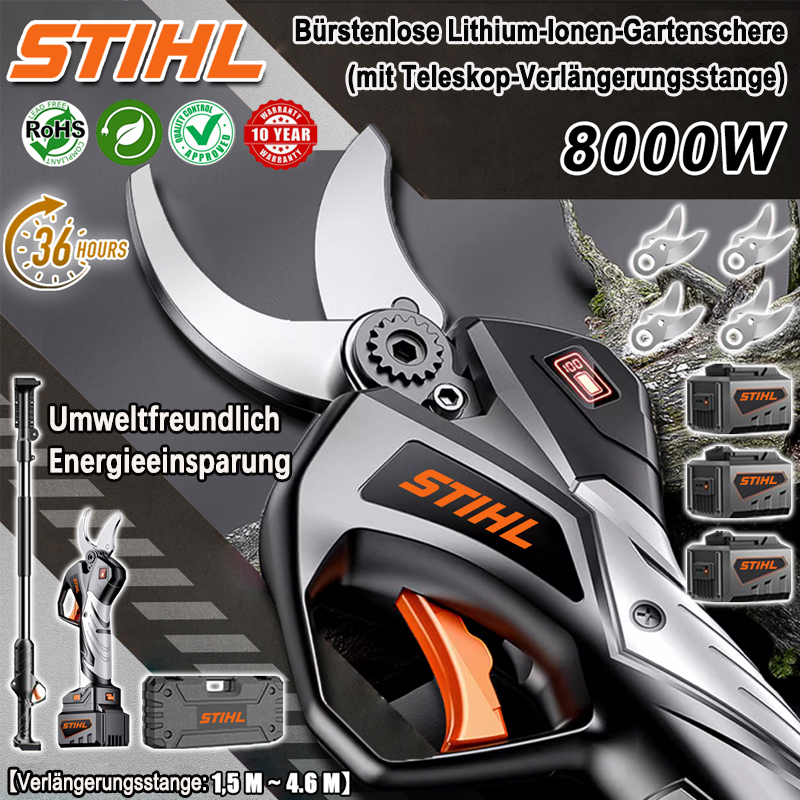 Stihl wurde 1926 gegründet und basiert auf dem Engagement für die Handwerkskunst und die Menschen, die unsere Produkte herstellen und verwenden. Die von uns produzierte bürstenlose Lithium-Ionen-Astschere hat zehntausende Versuche der STIHL Entwicklungsabteilung durchlaufen, sodass Sie sie bedenkenlos verwenden können!